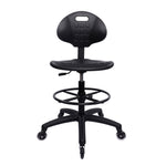 The 18" Adjustable Footring and 10" Adjustable Height are specially designed for heavy-duty usage. The seat is crafted from innovative materials that ensure resistance to stains, water, and chemicals. The rubber casters guarantee smooth movement on multiple surfaces.