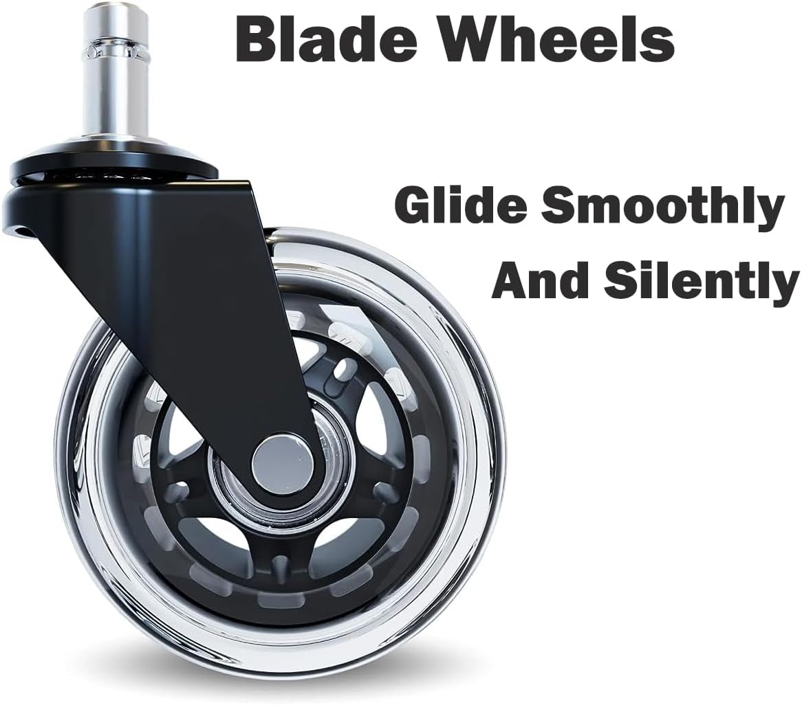 - 3 Inch blade wheels.Enjoy a carefree, safe glide across wood, hardwood, laminate, vinyl, tile and carpet floors all day long.
